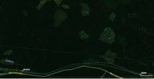 для этого идти по нашему маршруту до т. 89, потом по просеке вниз до